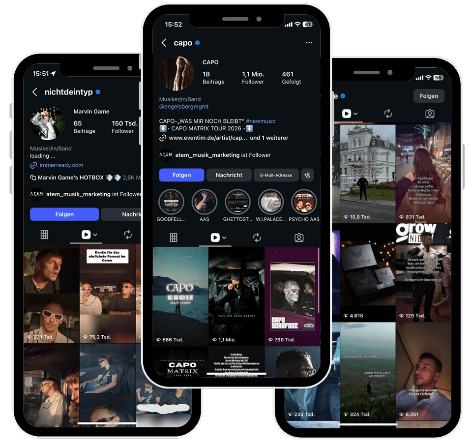 Du bekommst einen klaren Plan (Positionierung, Content-System, Release-Promotion) – und wir setzen ihn strukturiert um.
